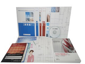 受講期間 6ヶ月(最短2ヶ月) 添削 5回 教材 ・ガイドブック・受講証・受講カード・CADトレーニングガイド(AutoCADまたはJw_cad)・学習テキスト01・学習テキスト02・練習問題/解答・模擬試験/解答・添削課題(5回分)・質問用紙・封筒 -