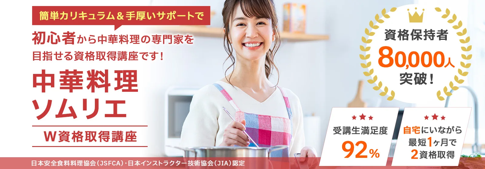 諒(りょう)設計アーキテクトラーニングのスペシャル講座なら、「中華料理ソムリエ®」と「四川料理ソムリエ®」の2資格を家にいながら、オンライン講座なら1ヶ月で課題を提出するだけで100%資格取得できます。