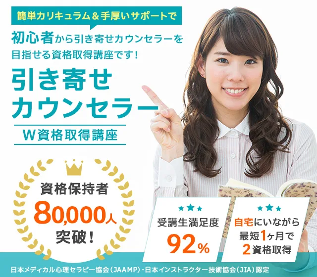 諒(りょう)設計アーキテクトラーニングのスペシャル講座なら、「引き寄せカウンセラー®」と「アファメーションインストラクター」の2資格を家にいながら、オンライン講座なら1ヶ月、紙教材なら2ヶ月で課題を提出するだけで100%資格取得できます。