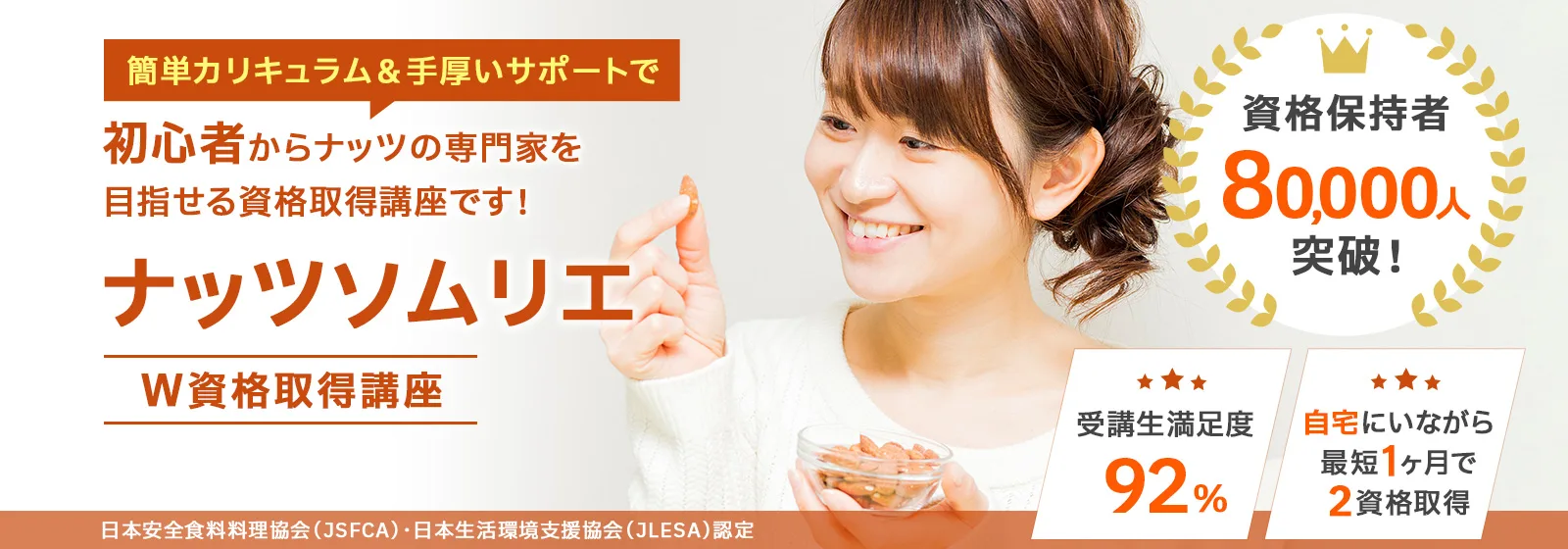 ナッツ資格とは、アーモンド・くるみ・カシューナッツなどに代表されるナッツ類の栄養・健康効果・活用法を体系的に学べる資格です。