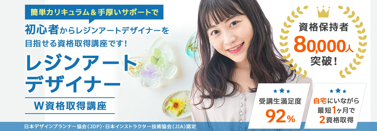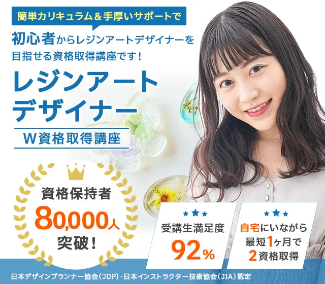 レジンアートデザイナーとUVレジンデザイナーのW資格取得スペシャル講座があったので、こちらのスクールに決めました。