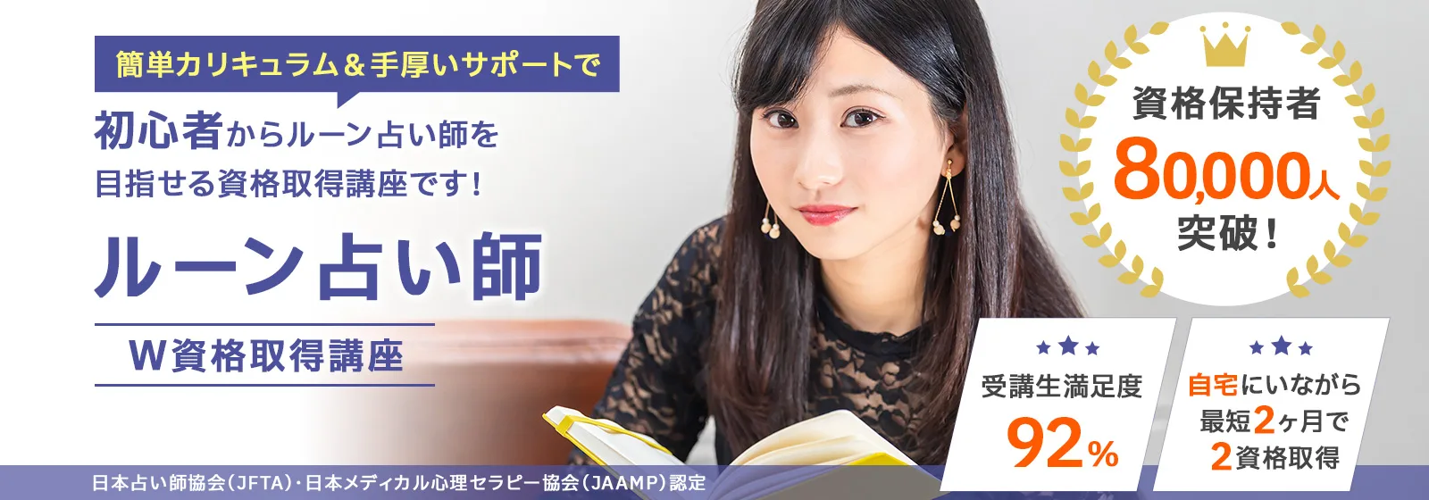 諒(りょう)設計アーキテクトラーニングのスペシャル講座なら、「ルーン占い師」と「ルーン文字リーダー®」の2資格を家にいながら、オンライン講座なら1ヶ月、紙教材なら2ヶ月で課題を提出するだけで100%資格取得できます。