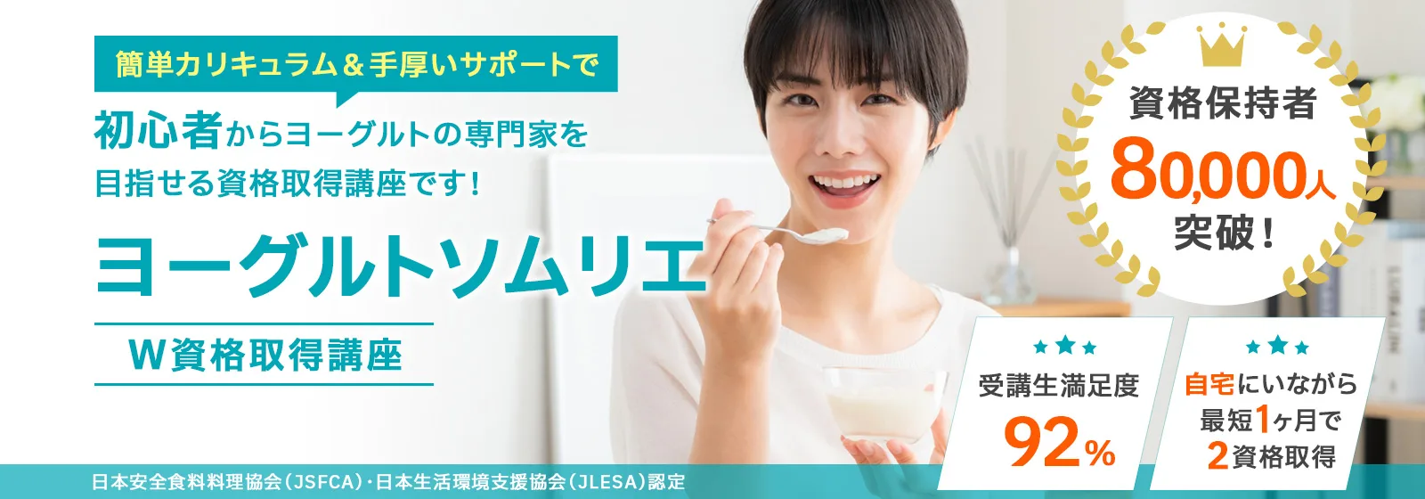 諒(りょう)設計アーキテクトラーニングのスペシャル講座なら、「ヨーグルトソムリエ」と「乳酸菌ソムリエ」の2資格を家にいながら、オンライン講座なら1ヶ月で課題を提出するだけで100%資格取得できます。